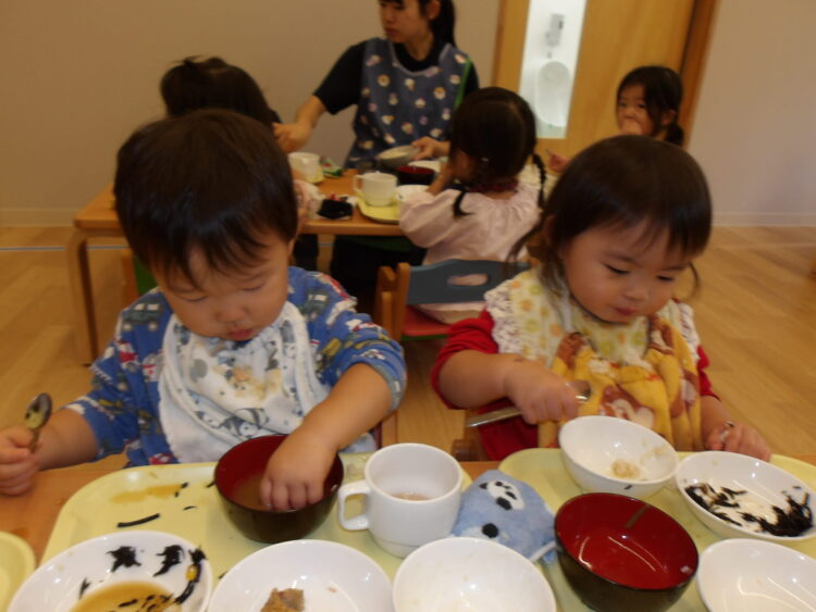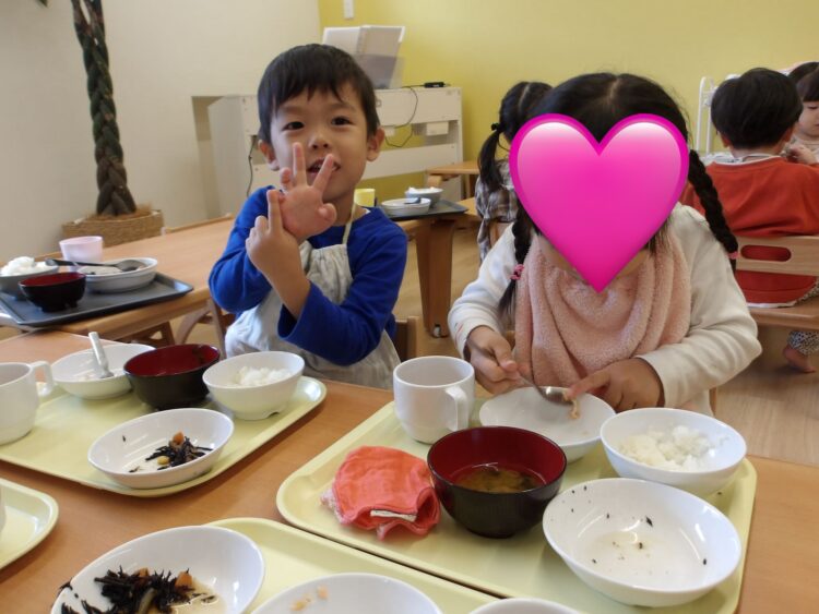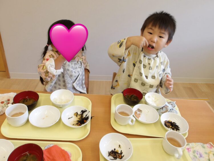 毎日の給食も楽しみで、お皿がきれいになるたびに「せんせー!みて!ピッカリーン✨」と得意気な表情で見せてくれます🎵