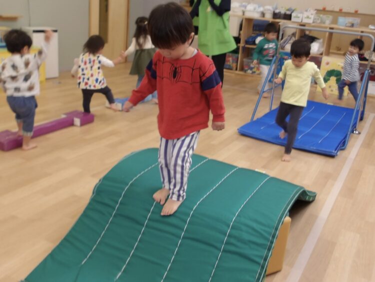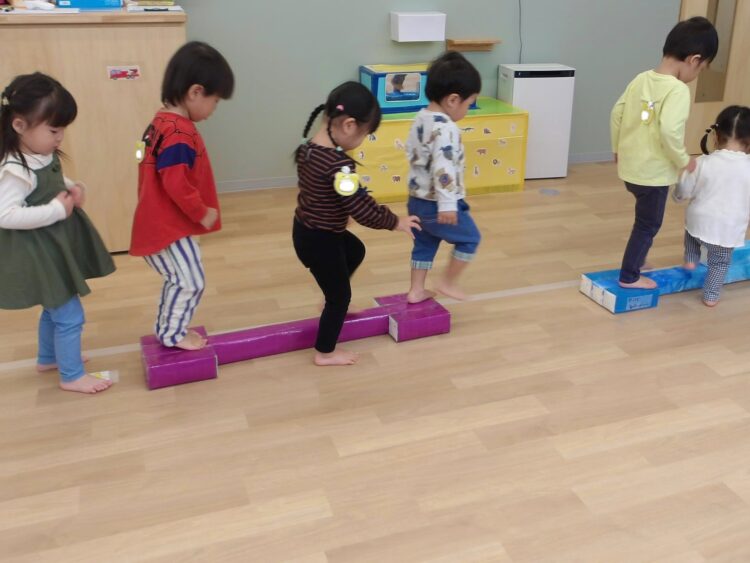気に入った運動遊びを何度も繰り返し楽しむ子もいました。