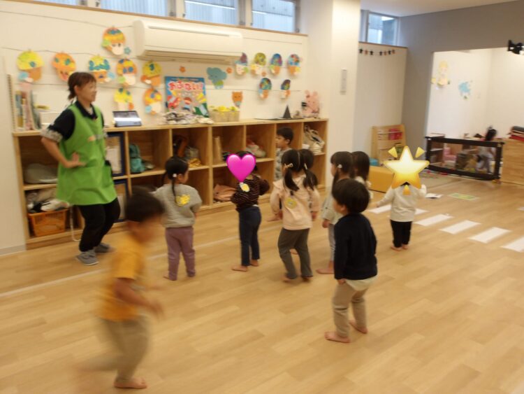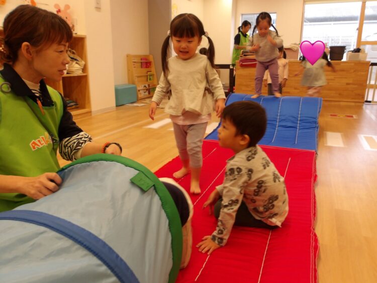 後ろ周りや両足ジャンプ、ケンケンも少しずつできるようになってきており、子どもたちも先生に褒められるようにと、楽しく今日も頑張って挑戦していましたよ😄