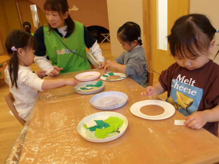 人差し指で薄く塗り広げることを伝えると、さっそくチャレンジしてくれていましたよ![]()