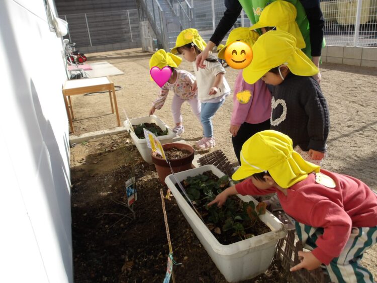 「いちご、おおきくなったかな?」