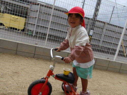 三輪車ではカップが落ちないように慎重に運んだり、線を引いてその上を走ったりして遊んでいましたよ!😄