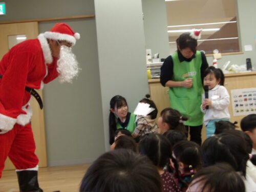 質問タイムでは、サンタさんに好きな食べ物や何歳かなどを大きな声で聞くことができました😃