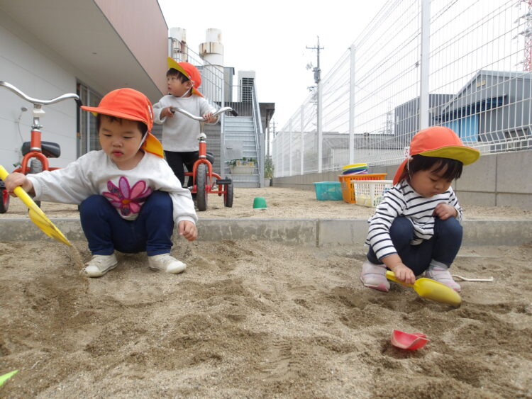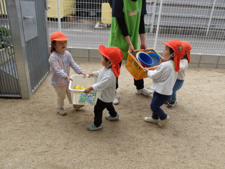 その後は園庭で遊びました!乳児クラスの小さいお友だちも園庭で遊んでいて、沢山のお友だちに嬉しそうな子ども達!
