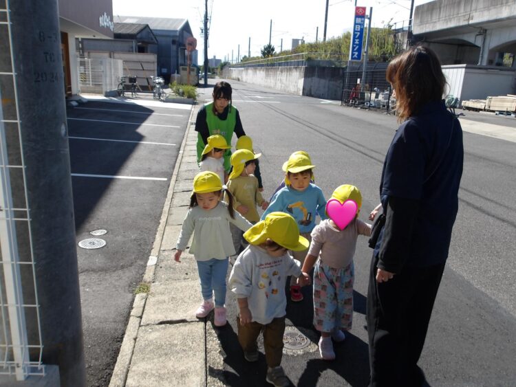 みんなで手をつないで歩くことにも慣れてきて、お散歩が大好きなうさぎ組さんです🐰
