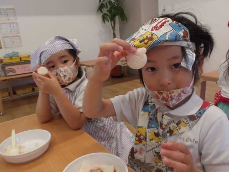 「きょうクッキングだよねー!」と、朝から子ども達のお喋りも盛り上がっていましたよ