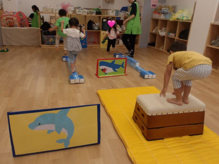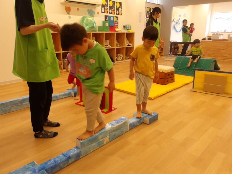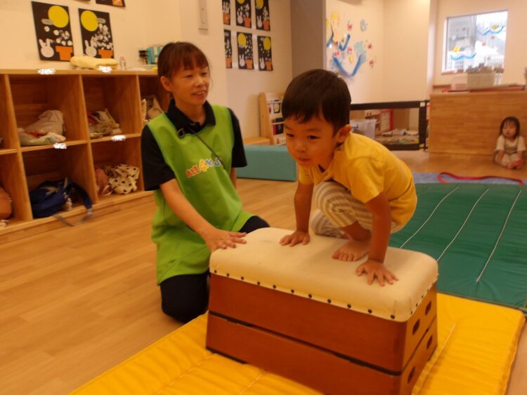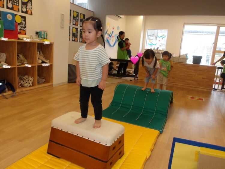 平跳び箱からジャンプをしたり、平均台を渡ったりしている後ろ姿は頼もしいですね