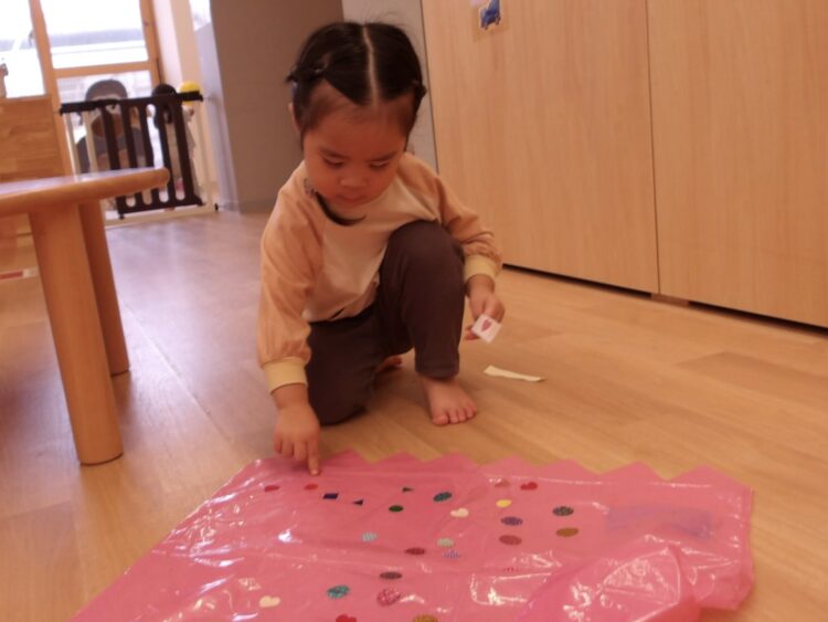 シールをバラバラに貼る子もいれば並べて貼る子もいて、それぞれの個性が出て可愛い衣装が出来上がりましたよ