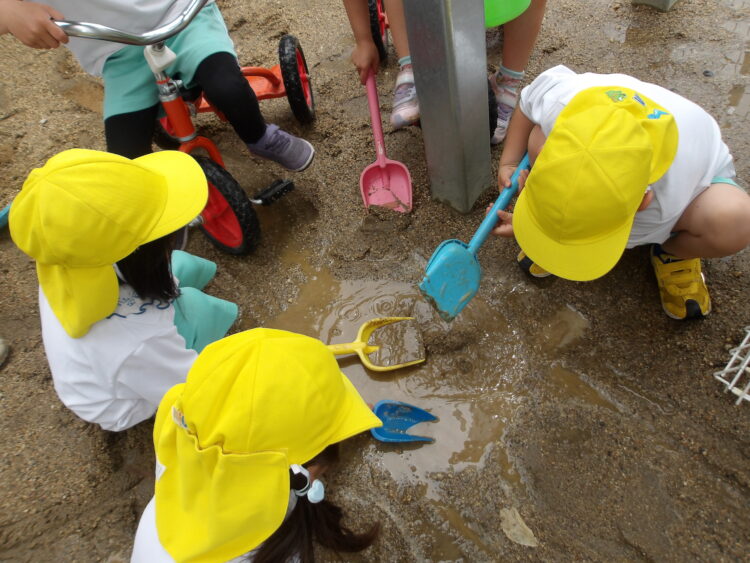 と、スコップでそーっと泥を集めながら、嬉しそうな幼児さんでした