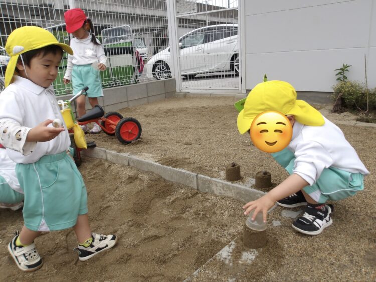 カップでケーキを作って並べ、お友だちとおままごとも楽しみました