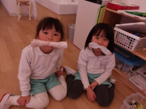 自由遊びでは鬼滅ごっこが始まり、役になり切って遊びましたよ😄