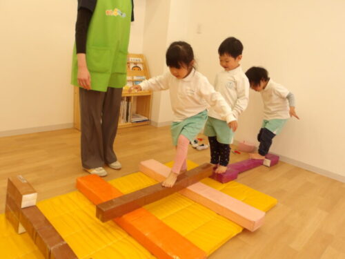 「跳び箱やりたい!」から始まって、気づけばサーキット遊びの配置も自分たちで考え、自分たちの手で作り上げ、お部屋の中でも思いっきり体を動かして遊びました😊
