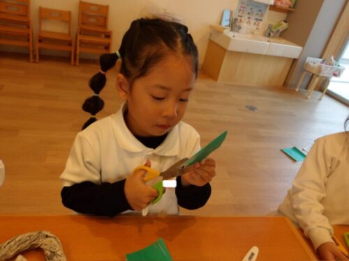 緑or黄緑の折り紙を切って、のりで貼り付け、リースの完成!⭐️