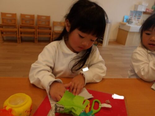 ハートになった!三角になった!と形を自分で考えて土台の完成!⭐️