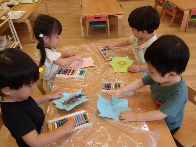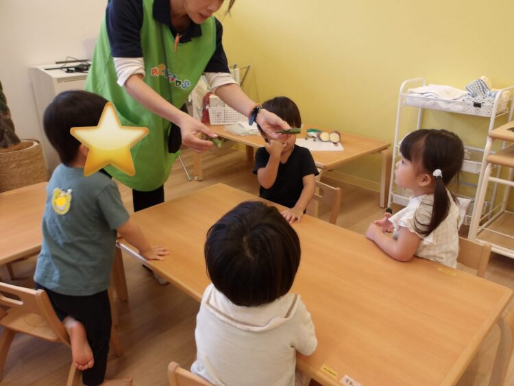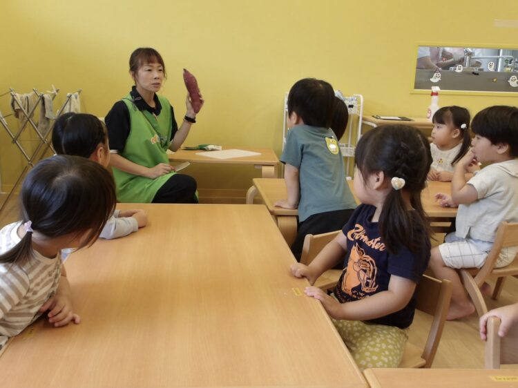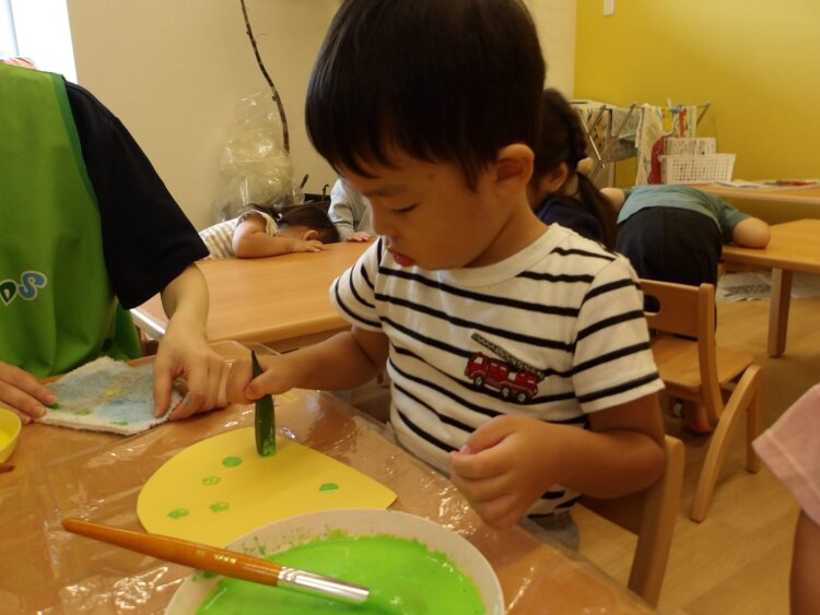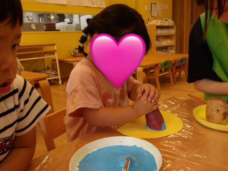 今回はさつまいも、オクラ、れんこんを使用し、野菜スタンプに挑戦!
