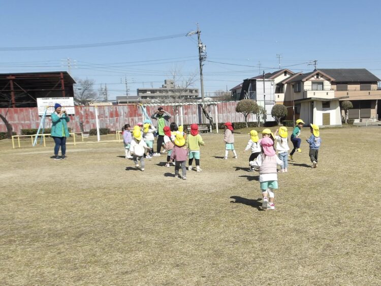 初めて幼児組さんと長塚公園に散歩にも行きました!お兄さん、お姉さんと手を繋いで行くことにワクワク✨