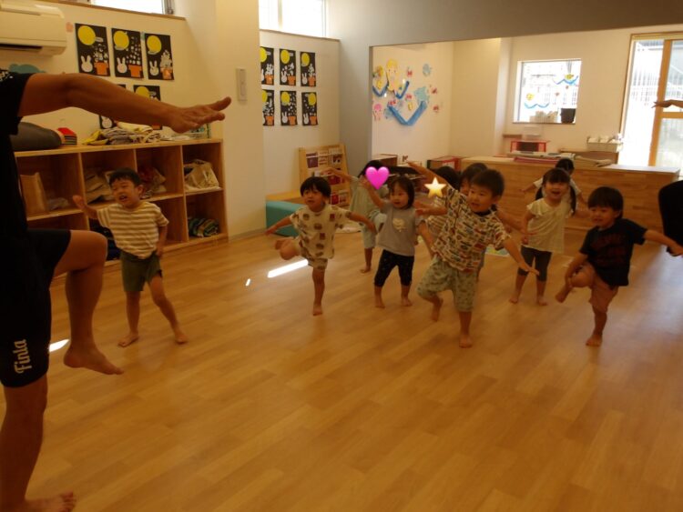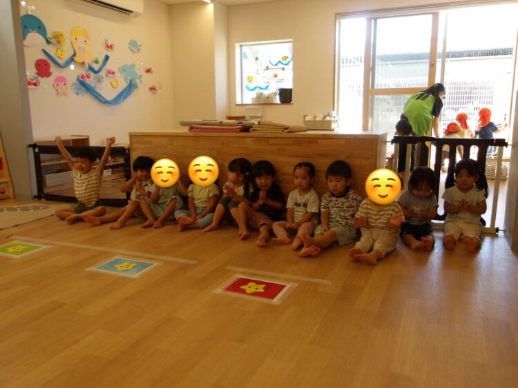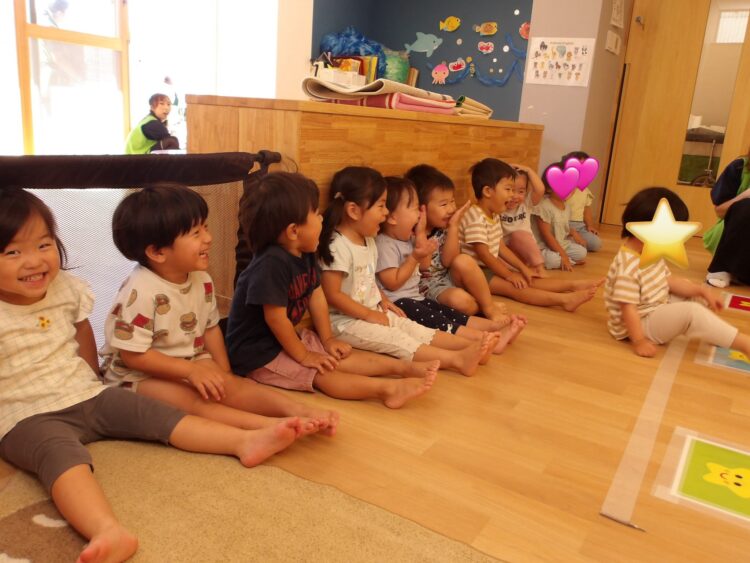 「がんばるぞー!!」と、やる気いっぱいのうさぎ組の子ども達です