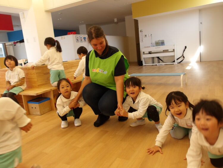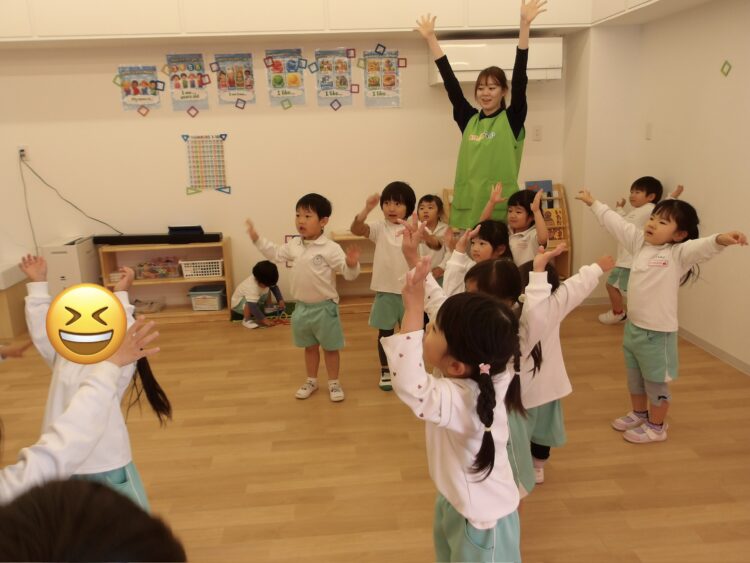 イングリッシュの先生とみんなでビックサークルになり仲良くダンスをしたり、手を繋いでお歌を歌ったり楽しんでいます🎵