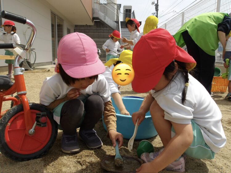 湿った土を丸めて泥団子にして遊んでいるお友達もいました😌