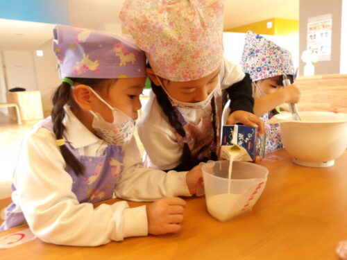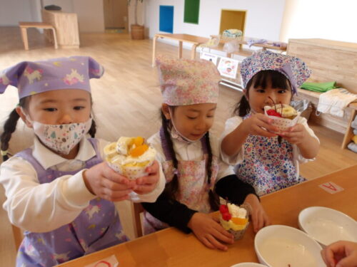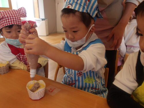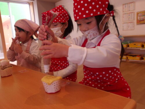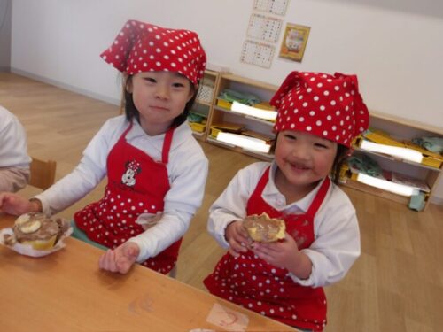 順番が来ると「はーい!」といって、隣の友達と協力しながらつくれました😄