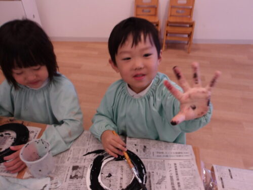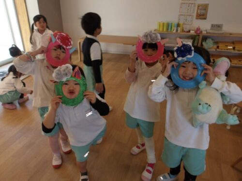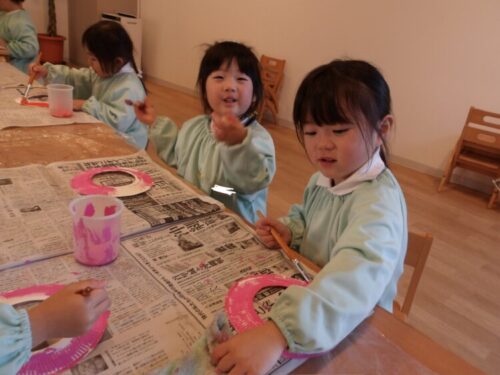 今日は節分の絵本を見て鬼のお面作りをしました🎨