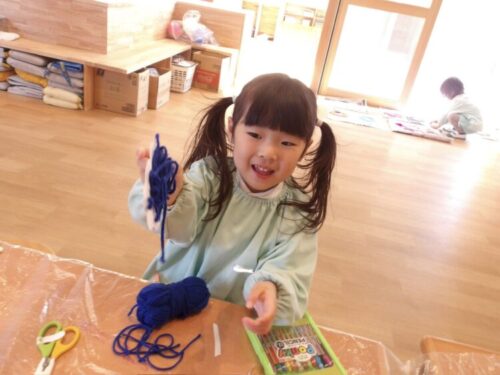 自分の好きな色や毛糸を選び、角もハサミでチョキチョキ✂️