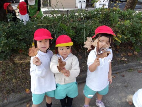 秋の葉っぱもたくさん落ちていて、いろんな形、大きさ比べをして拾っていましたよ😄