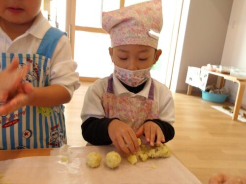 小さくたくさん丸く作る子もいれば大きくひとつに作る子もいたり、個性あふれるスイートポテトが完成!⭐️