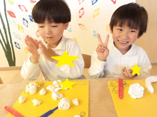 粘土の感触を楽しみながら、お友だちとお話しをして嬉しそうにしている様子がありました✨