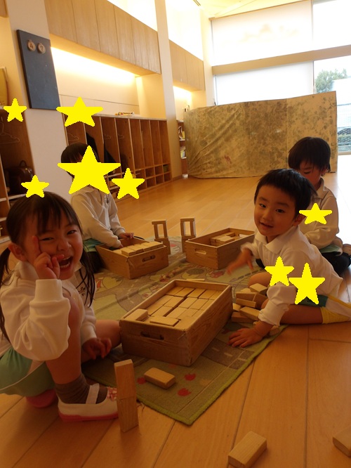 新しい粘土を貰って遊んだり、ままごとや積み木で遊んでいる子どもたち😆
