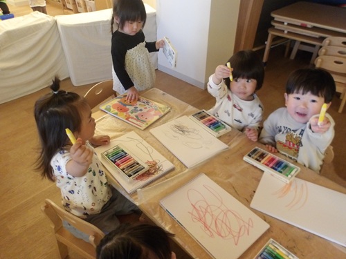 うさぎ組さんはお部屋でお絵描き😀 上手に描けたよ!