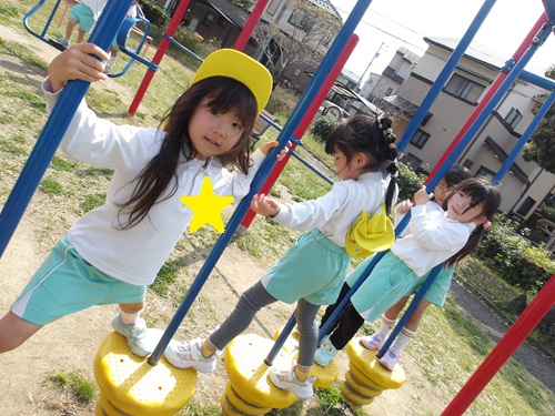 こちらのお友だちは、2人で仲良く遊具で遊んでいました![]()
