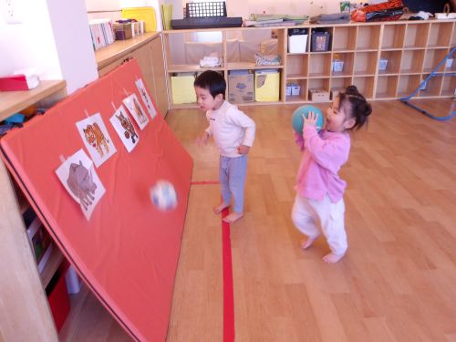 鉄砲に見立てたボールを一人一つ持って猛獣たちに思いっきり投げていました😄