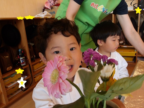 砂場の端の方で押し花体験もしてみました🌷