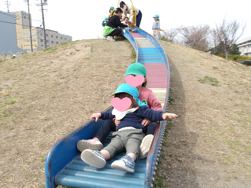 すべりだいでは、ひよこさんに優しく手を差し伸ばして一緒に滑っていました💖