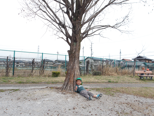 かくれんぼの合間、疲れて木陰でひとやすみ😆