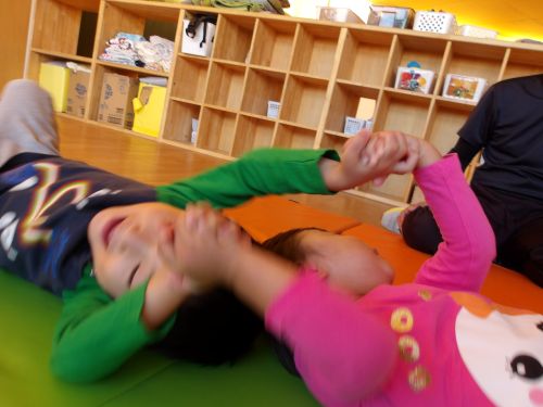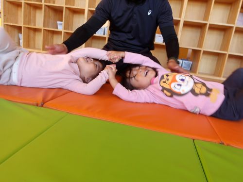 マットゴロゴロ運動も今日はお友だちと手を繋いで二人組で仲良くゴロゴロしていきます🌟