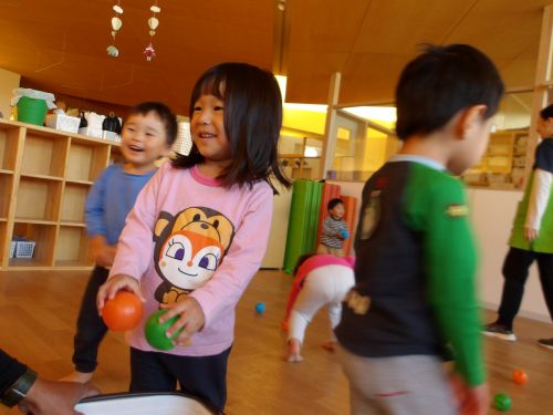 ボールをみんなでカゴの中に全て集めると、「わあーー!!!」と体操の先生がボールのカゴを落としてしまい、みんな大笑いでまたカゴの中にボール回収を頑張りましたよ😊💗