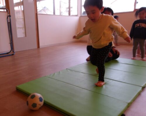 普段からボール遊びをしていますが、いつもと違ったボールの使い方や身体の動きに興味津々🤭