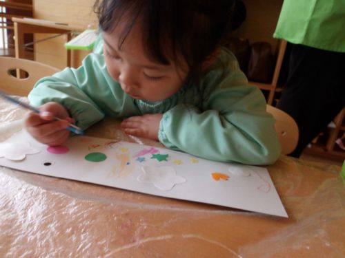 ノリでこいのぼり製作をした後にこいのぼりにお絵かきしたい!!と教えてくれたお友だちはポンキーを使ってこいのぼりに模様もつけてあげていました💗