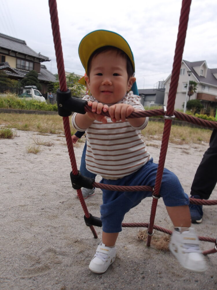 ひよこ組さんも滑り台のロープ登りに挑戦です✨✨手足の使い方がまだまだ難しいようでしたが、しっかりとぎゅっとロープを握っていました!😀