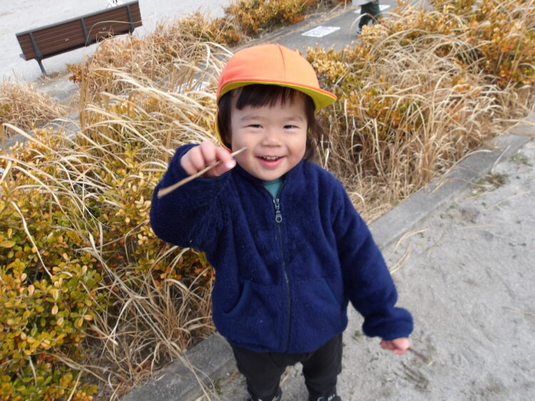 長い枯れ葉を見つけて、嬉しそうに先生に見せてくれていましたよ🌟
