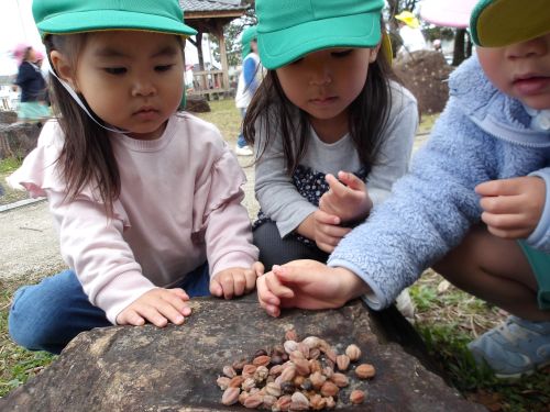 公園にはたくさんの木の実が落ちていておともだちと拾ってじっくり観察していました👀✨
