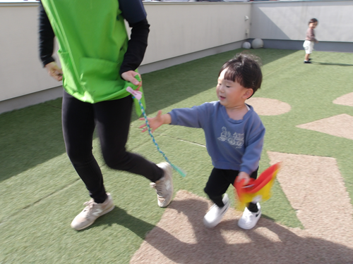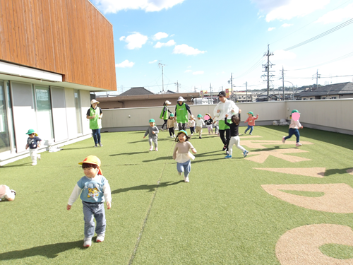 屋上園庭ではげんきいっぱい走り回って始まったしっぽとり💨