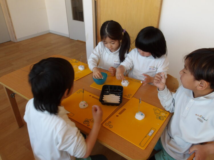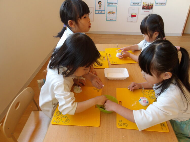 いつも使っている粘土と感触が違ったようで大事そうに丸めていましたよ🤭