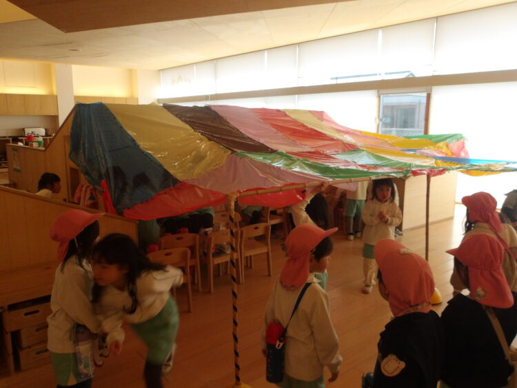 最後にトンネルを楽しみ、テントに変身させました🎪