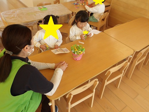 ぱんだ組さんときりん組さんは朝の会でハサミの使い方を再確認して製作遊びを楽しむ様子がありました❣