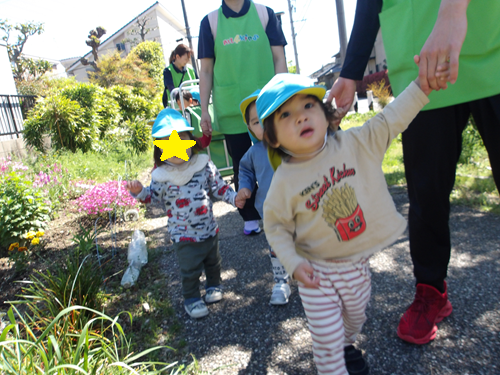うさぎ組さんは初めてのお散歩でみんなお兄さんやお姉さんたちと手を繋いで上手に歩くことができました❕