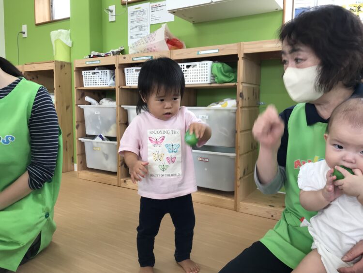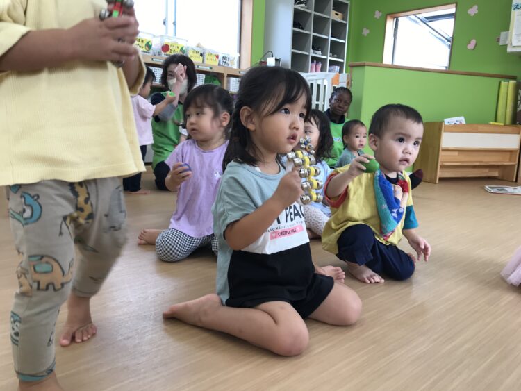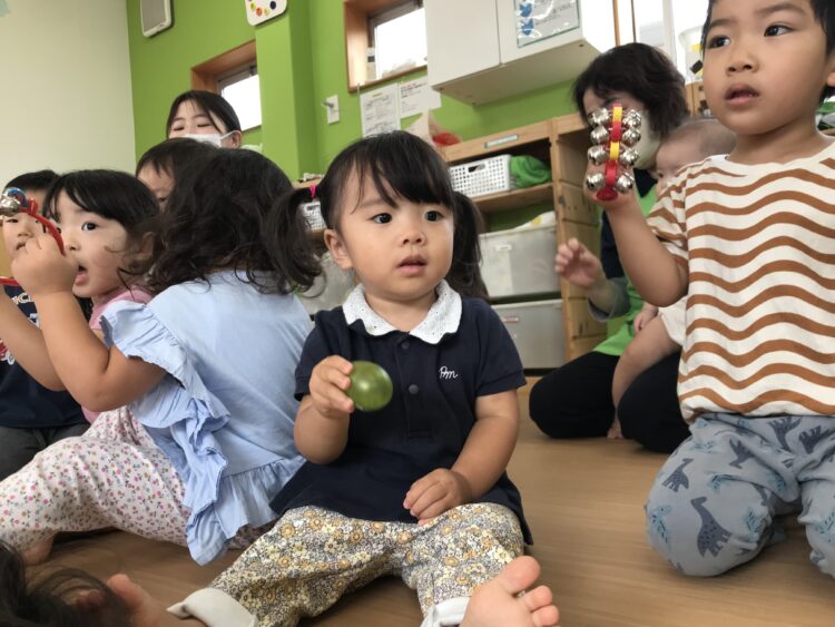 2歳児さんは 鈴0,1歳児さんはエッグマラカスです