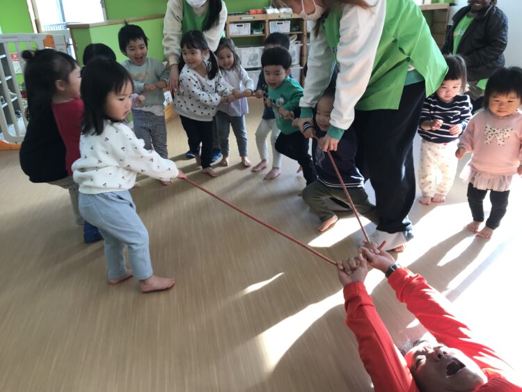つぎは 講師が200キロ級のマグロになって、子ども達に引っ張られます。